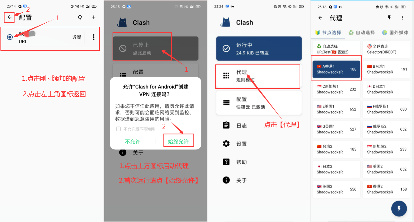 配置完成就可以选择节点使用了【一般选择香港台湾的节点,因为香港台湾的节点速度快】